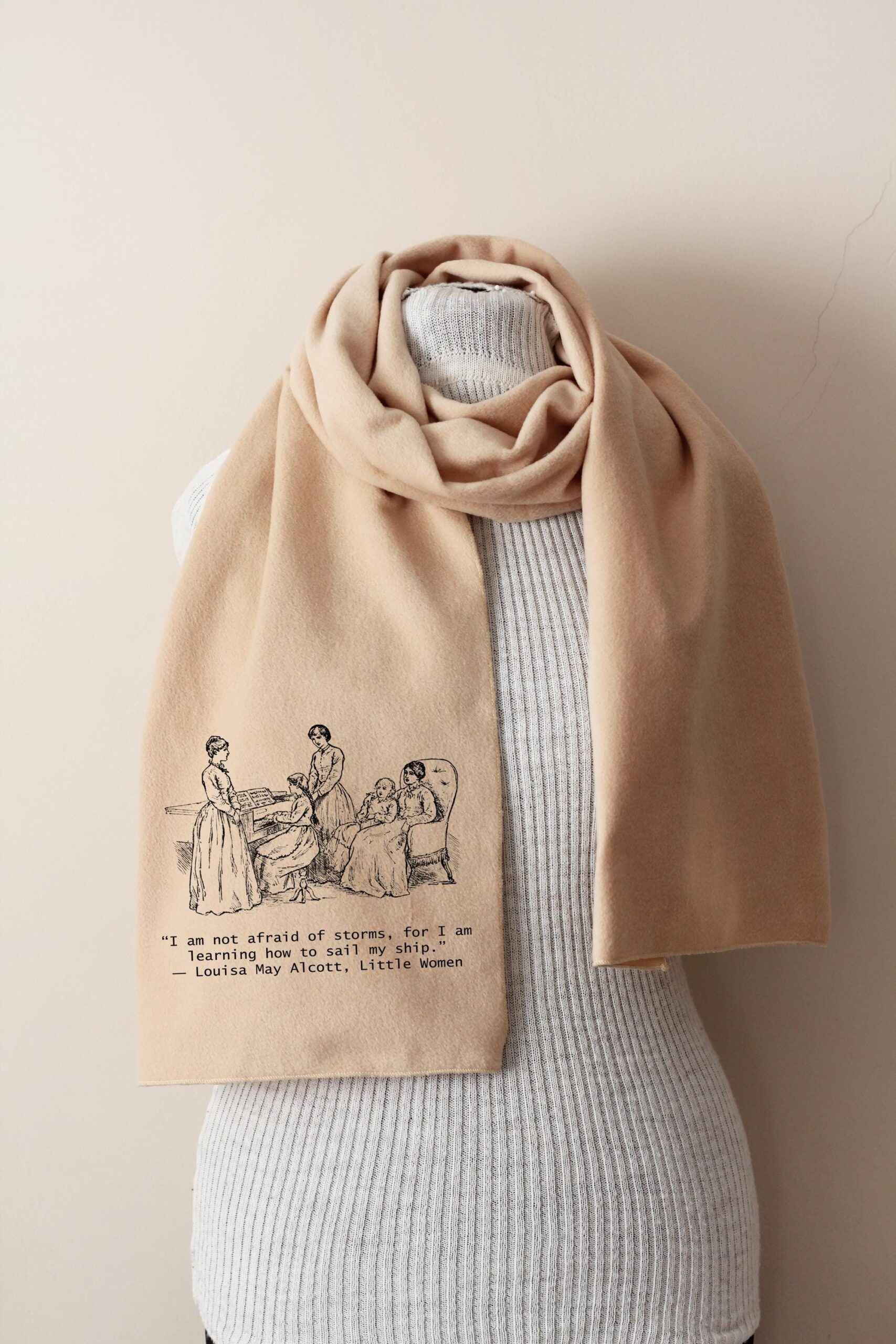 Celebrate literary strength and sisterhood with our Little Women Scarf, featuring Louisa May Alcott’s empowering quote on soft beige fleece—perfect for readers, writers, and vintage souls.